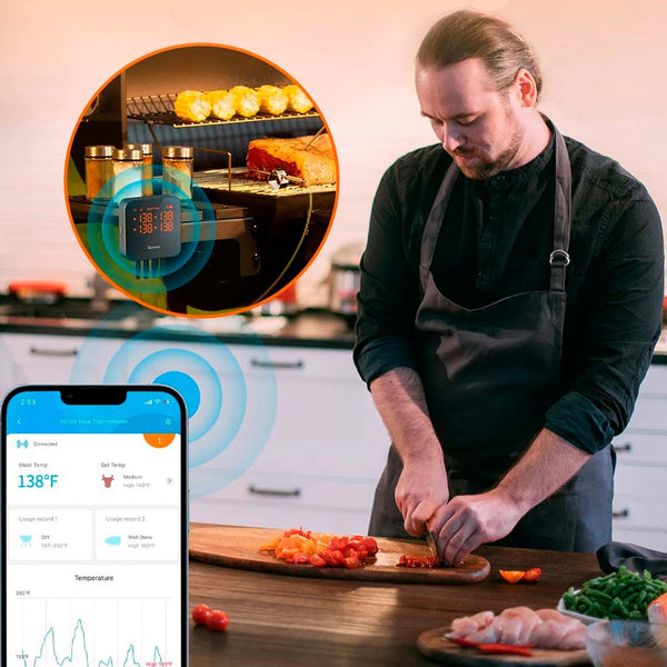 ¿Estás cansado de adivinar cuando la carne está en su punto? ¿Estás listo para llevar tu expertiz de asador al siguiente nivel? No busques más: ¡Termómetro de Carne Bluetooth con 4 Sondas - Govee!