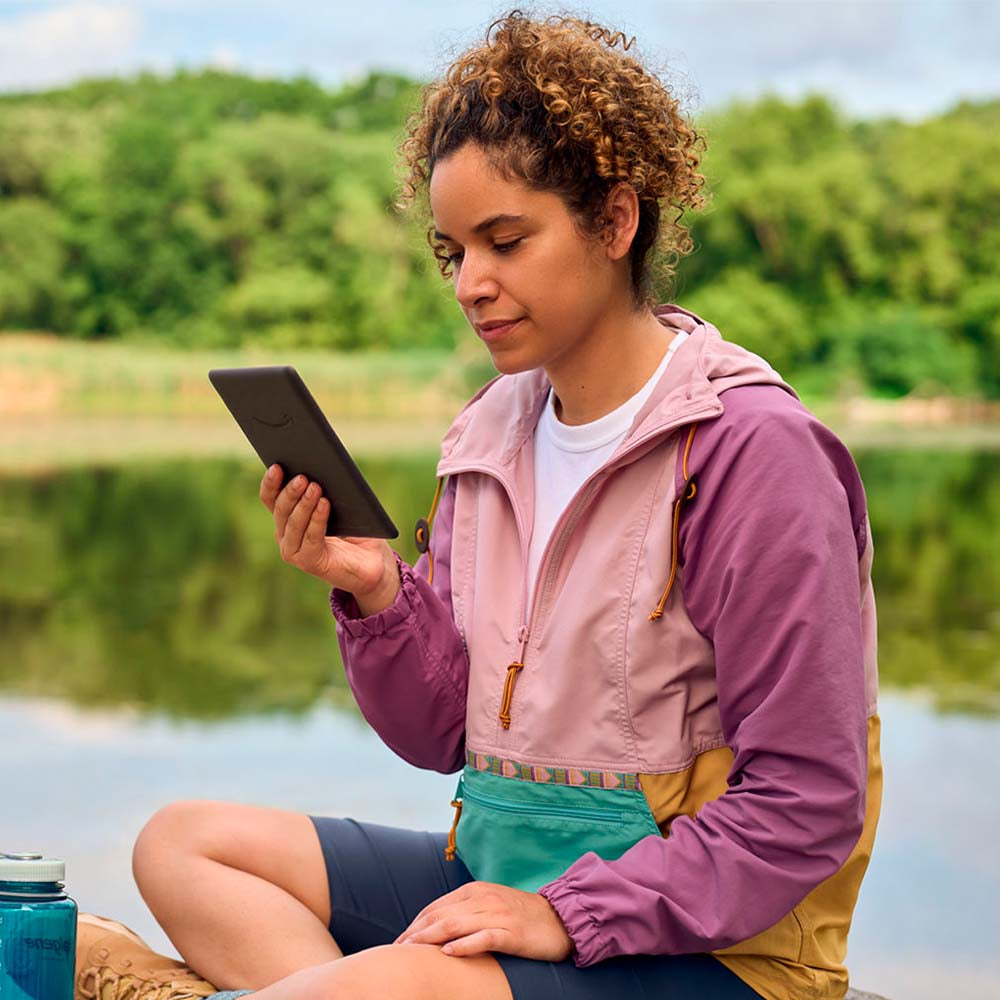 El Amazon Kindle cuenta con una pantalla delgada de 6,8” y 300ppi de brillo, lo cual la hace visiblemente similar al papel y puede ser ajustada de color blanco a color ámbar, además de ser a prueba de reflejos y resistente a la luz, permitiéndote leer bajo cualquier tipo de iluminación sin afectar la visibilidad de la pantalla, inclusive la luz del sol.