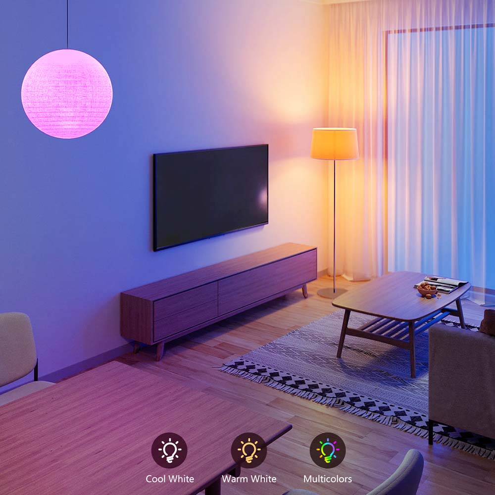 • Colores de bombilla ajustables: colores RGB más blancos cálidos y fríos.