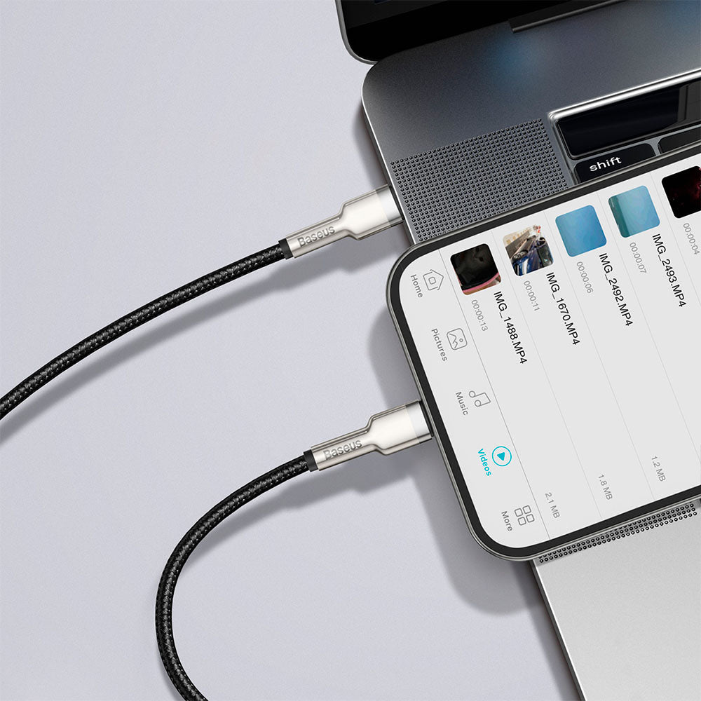 Los cables de la serie Cafule de Baseus están diseñados para ofrecer una combinación de durabilidad, capacidad y potencia, gracias a su recubrimiento metálico y a sus 8 hebras de núcleos engrosados.