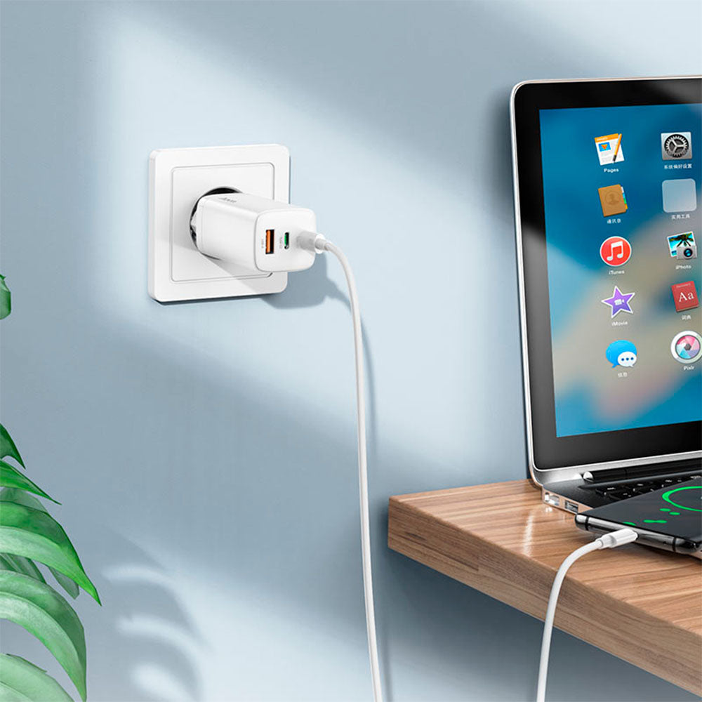 El Cargador de Carga Rápida Hoco N16 Scenery es el compañero ideal para tus dispositivos de alta potencia. Este cargador Hoco N16 Scenery PD a PD 65W 3 puertos es ideal para cargar dispositivos móviles de manera rápida y eficiente. Con su tecnología de carga rápida USB Power Delivery 3.0, ofrece una potencia máxima de carga de hasta 65W, lo que permite cargar dispositivos compatibles en el menor tiempo posible. Su diseño compacto y portátil se adapta a cualquier estilo de vida y su material de ABS y PC garantiza su durabilidad.
