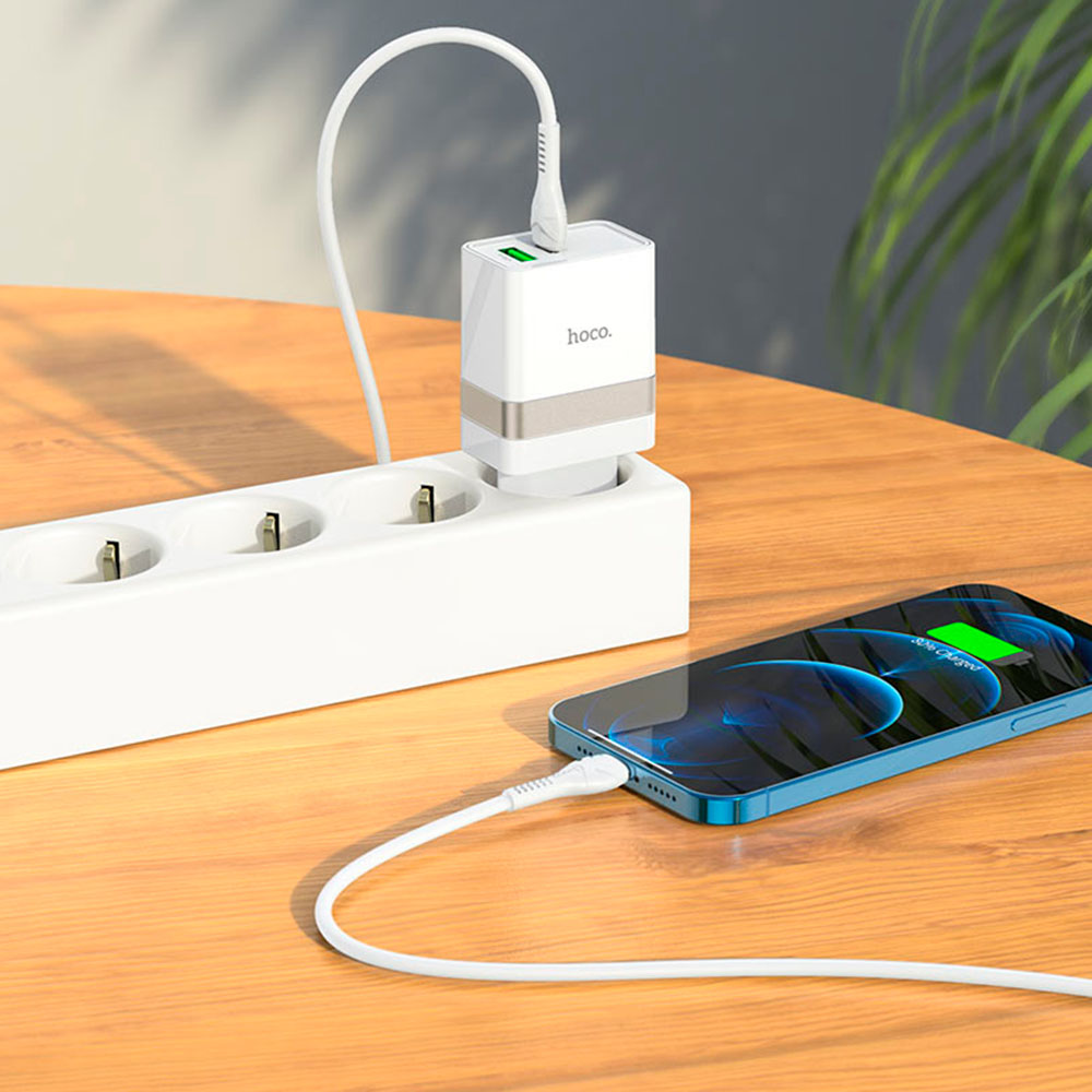 El Cargador Hoco N21 es la solución perfecta para cargar una variedad de dispositivos de manera rápida y eficiente. Con capacidades de carga de hasta 30W con PD y QC3.0, es compatible con el iPad a 30W, teléfonos móviles Samsung a 25W y teléfonos móviles Apple a 20W. Nunca te quedes sin batería con este cargador versátil.