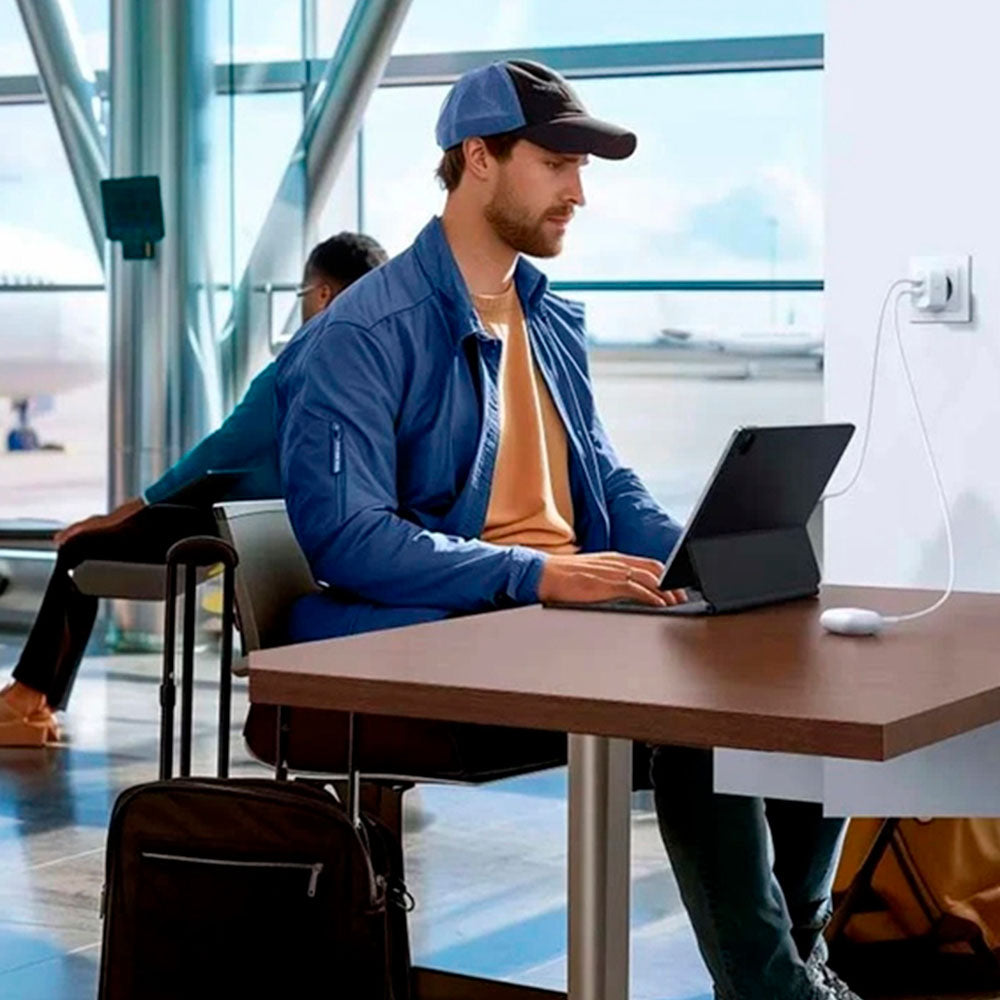 Gracias a sus dos puertos —USB-C y USB-A— puedes cargar un equipo con carga rápida de hasta 20W o alimentar dos dispositivos al mismo tiempo con hasta 15W totales, ideal para quienes no quieren perder tiempo esperando turno en el enchufe. Desde teléfonos y tablets hasta accesorios como audífonos, power banks o gadgets diarios, el X227 se convierte en un aliado práctico para tu día a día.