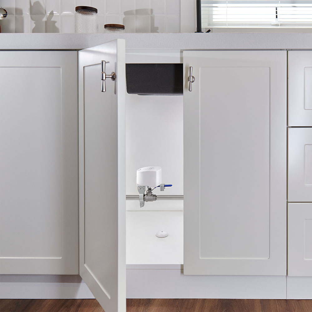 El Controlador de Válvula T1 funciona con sensores de fuga para monitoreo continuo y apagado instantáneo, previniendo riesgos de inundación.