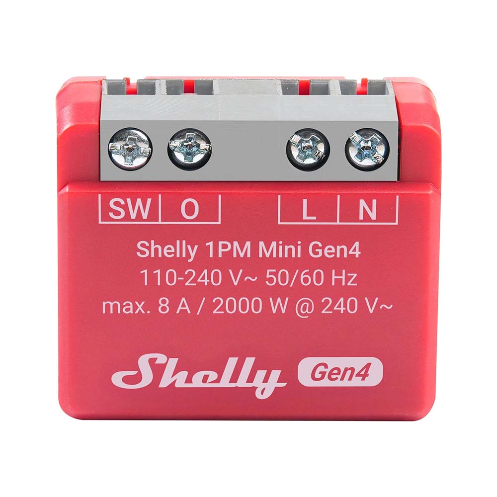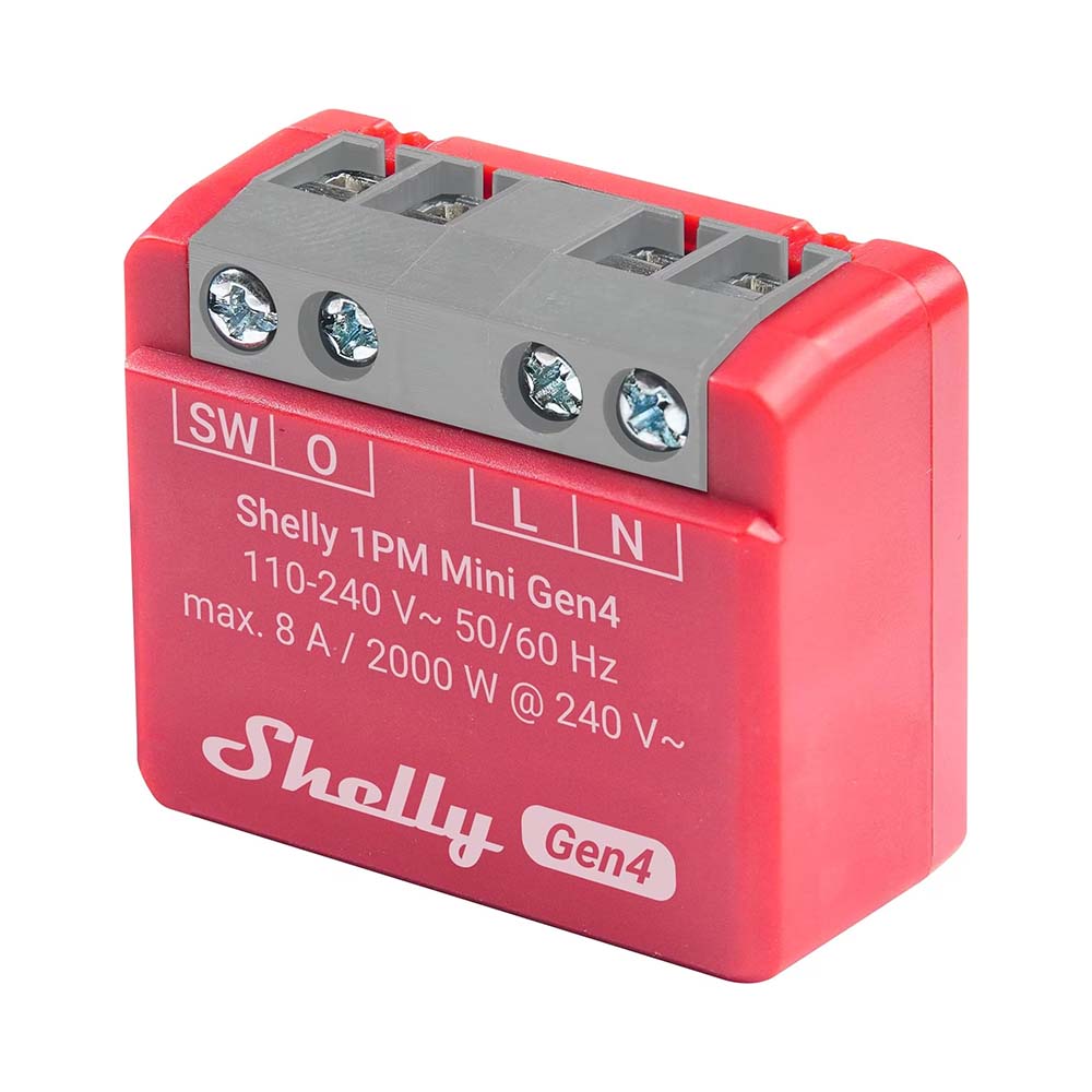 Shelly 1PM Mini Gen4 es un interruptor inteligente compacto con medición de potencia que permite el control remoto de electrodomésticos a través de un teléfono móvil, tableta, PC o sistema domótico. Puede funcionar de forma independiente en una red Wi-Fi local o a través de servicios de domótica en la nube. Este dispositivo es una versión mejorada del Shelly 1PM Mini Gen3 con un procesador más avanzado y conectividad Zigbee.