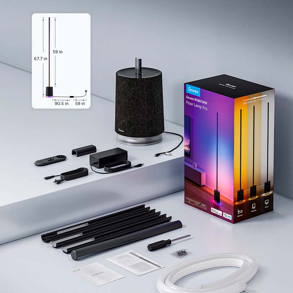 Experimente el mejor ambiente con la lámpara de pie Govee Pro RGBICWW. Ilumine su espacio con un alto brillo y sincronice los efectos de sonido e iluminación para una experiencia envolvente. Eleve su entorno con facilidad y sofisticación.