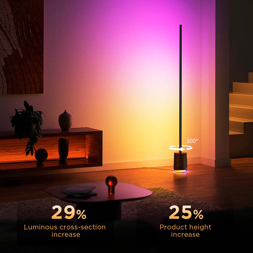 Experimenta un nuevo nivel de iluminación ambiental con la Lampara de Píe Pro de Govee. Ilumina cualquier espacio con grandes cantidades de brillo, y sincroniza el sonido con efectos de luces para tener una experiencia luminosa inmersiva.