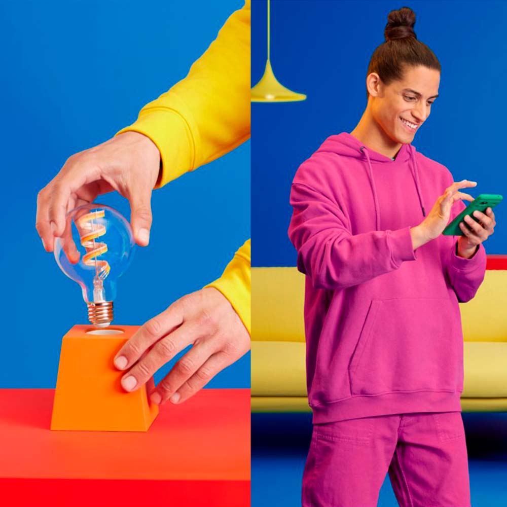 Mezcla modos de luz blanca y de distintos colores para crear la atmósfera luminosa perfecta para tus momentos diarios. Simplemente guarda tu nueva escena y selecciónala en cualquier momento con la aplicación WiZ o tu voz.