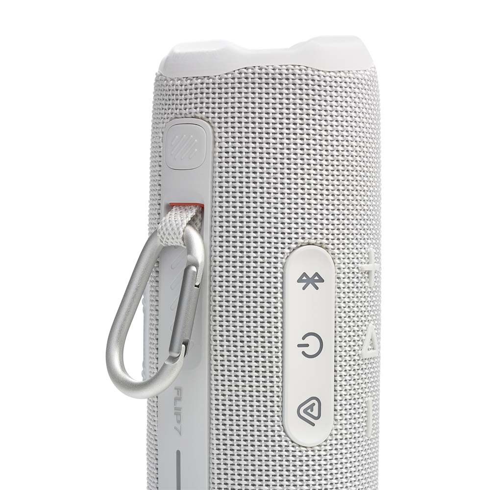 - Contenido de la caja: 1x JBL Flip 7, 1x mosquetón, 1x guía de inicio rápido, 1x tarjeta de garantía y ficha de seguridad.