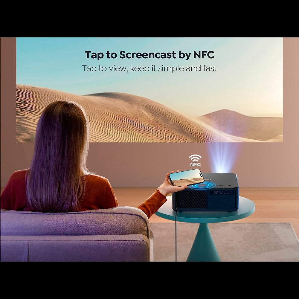 El proyector inteligente K2 ofrece conectividad y conveniencia perfectas, lo que permite a los usuarios compartir instantáneamente su contenido desde su dispositivo habilitado para NFC con solo un simple toque.