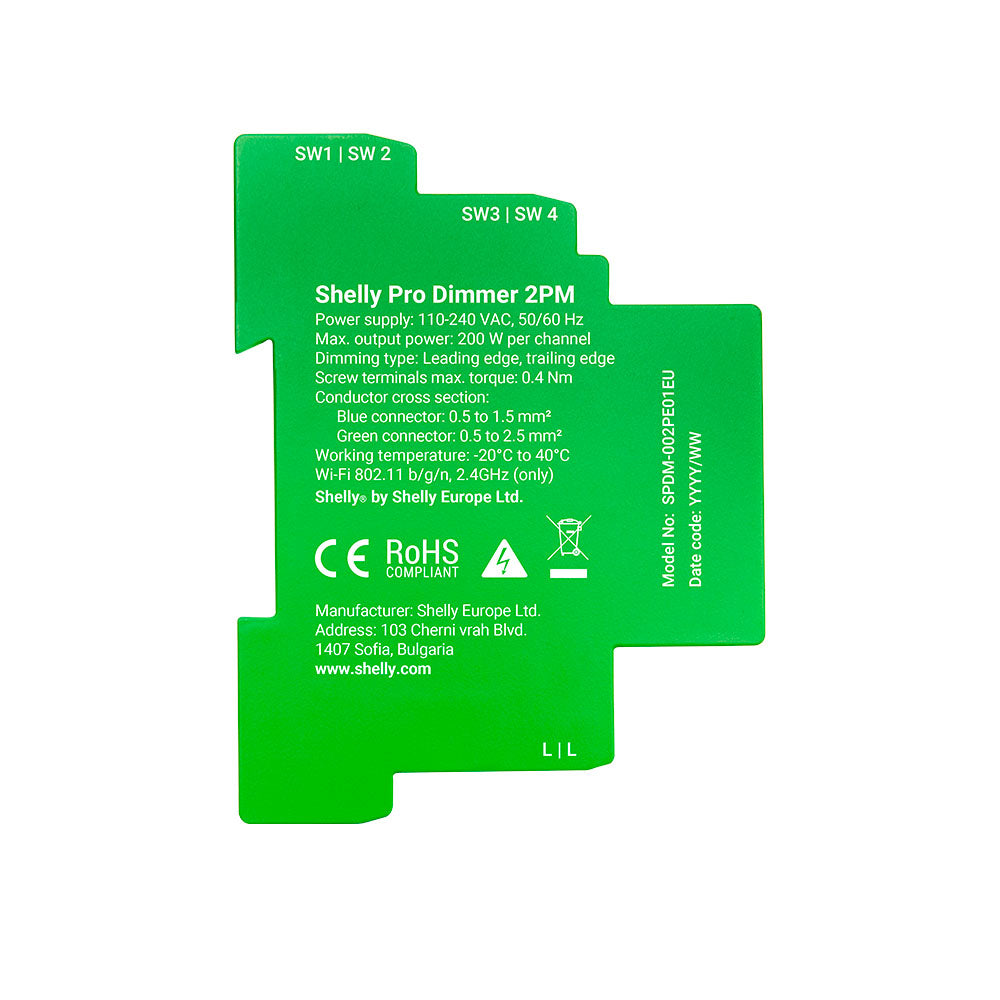 Shelly Pro Dimmer 2PM es un regulador inteligente de dos canales, montable en un riel DIN y manipulable por red WiFi local, LAN y Bluetooth con el que podrás y controlar la iluminación de tu hogar de una manera totalmente customizada.