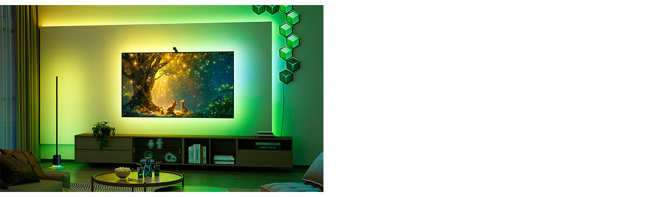 El 3 Lite puede capturar instantáneamente el color de cualquier pantalla de TV para que coincida con el color sin problemas de compatibilidad. Utiliza las luces del televisor mientras transmites contenido, ves videos en línea, juegos, etc.