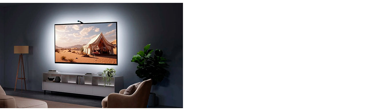 Disfruta de imágenes envolventes con Govee TV Backlight 3 Lite. Este conjunto incluye corrección de ojo de pez, tecnología RGBICW, adaptabilidad a televisores ultradelgados y mucho más.
