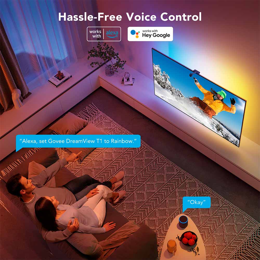¿Disfruta del control manos libres? Te tenemos cubierto. Use Siri, Alexa o el Asistente de Google para encender / apagar las luces, cambiar sus colores o aumentar / disminuir el brillo al nivel deseado. Con simples comandos de voz, ahorrará tiempo mientras establece el estado de ánimo que desea.