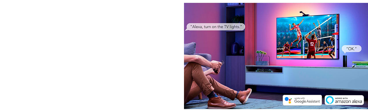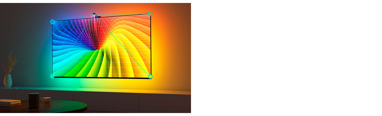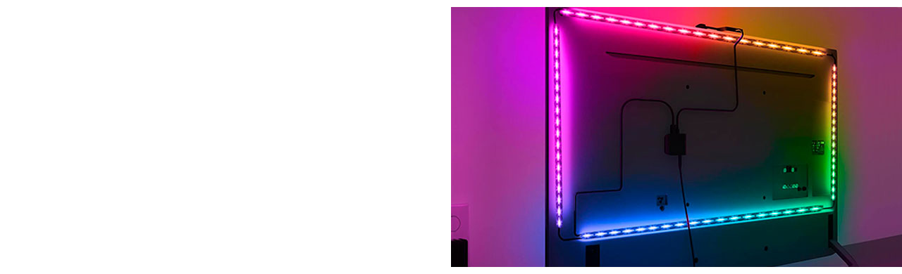 Con las luces de fondo de TV de inmersión, su mundo de juegos y sus noches de películas nunca volverán a ser lo mismo. Mejore el entretenimiento de su hogar con toques de colores vibrantes que bailan alrededor de su televisor, imitando lo que está en la pantalla.