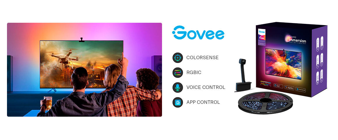 Las luces de fondo Govee Immersion TV son perfectas para la mayoría de las pantallas planas de 55 a 65 pulgadas. Reinvente la forma en que mira en exceso sus programas favoritos de Netflix con colores dinámicos que se emiten desde todos los rincones de su televisor. Esta luz de fondo no está optimizada para funcionar con televisores curvos.