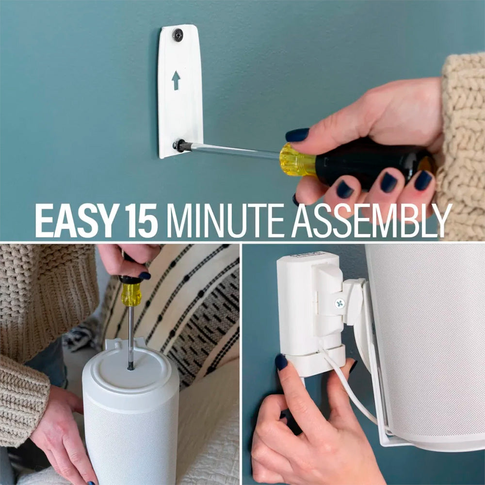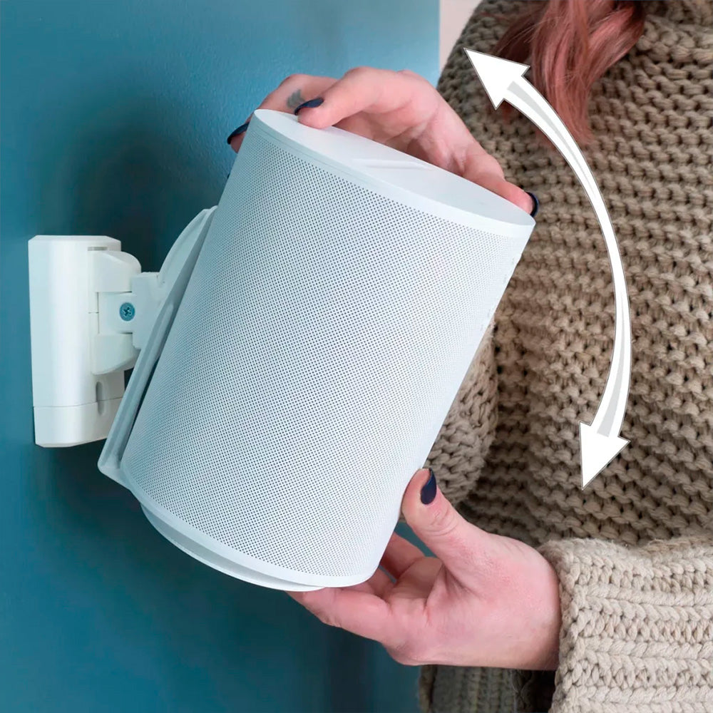Ajuste de manera segura su altavoz Sonos Era 100 en la pared, para así lograr una apariencia elegante y perfecta en el espacio que a usted le acomode, este soporte tiene la capacidad de inclinarse y girar, proporcionándote la posición optima para poder escuchar desde cualquier lugar de tu habitación en la cual te encuentres. Este tiene un sencillo montaje de 3 pasos, en solo 15 minutos.