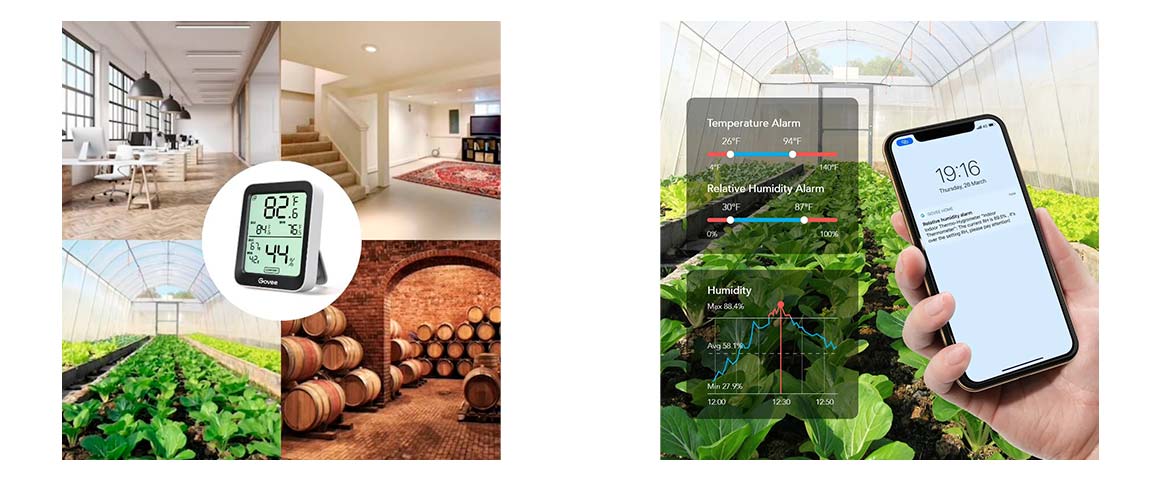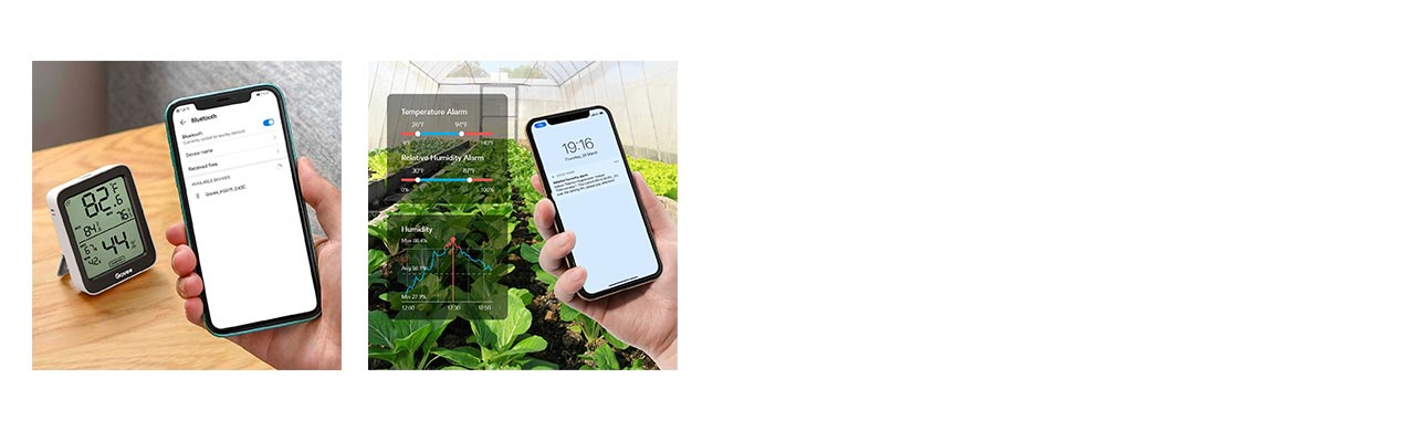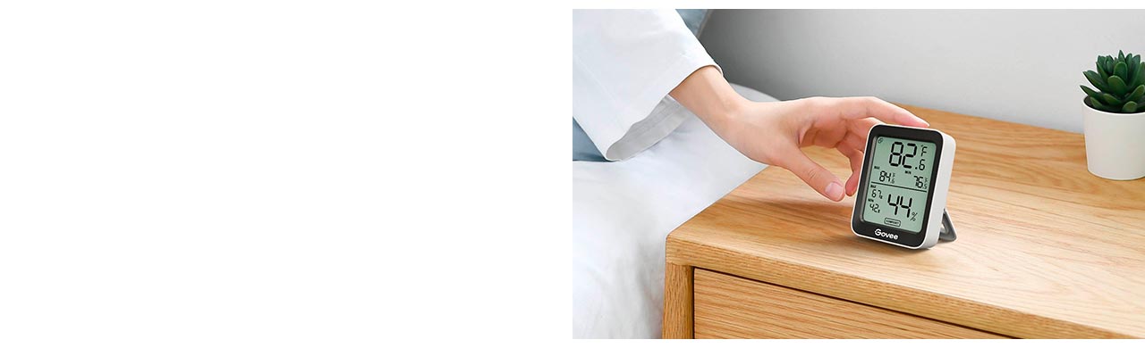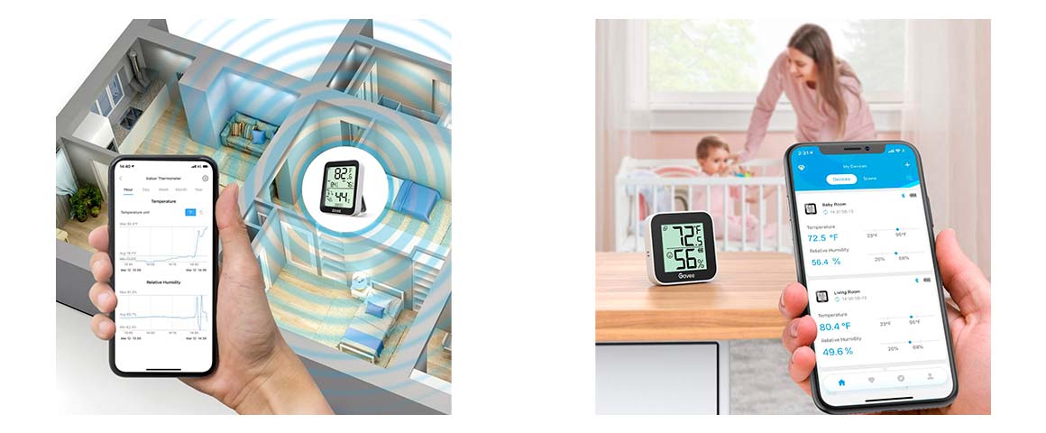 Controle la temperatura y la humedad de cualquier espacio interior con el termómetro higrómetro Govee. Mantente al tanto de tus datos de temperatura y humedad en cualquier momento para un estilo de vida más saludable.