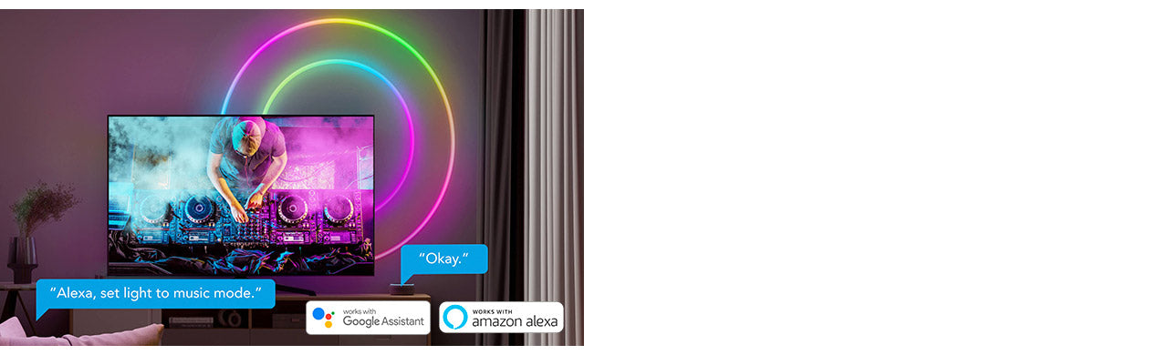 Gestione sus luces de neón con comandos de voz simples a través de Alexa, Google Assistant y Govee Home App. Obtenga acceso manos libres a varias funciones en la aplicación Govee Home, como el modo Música, donde su luz se sincronizará con su audio favorito.